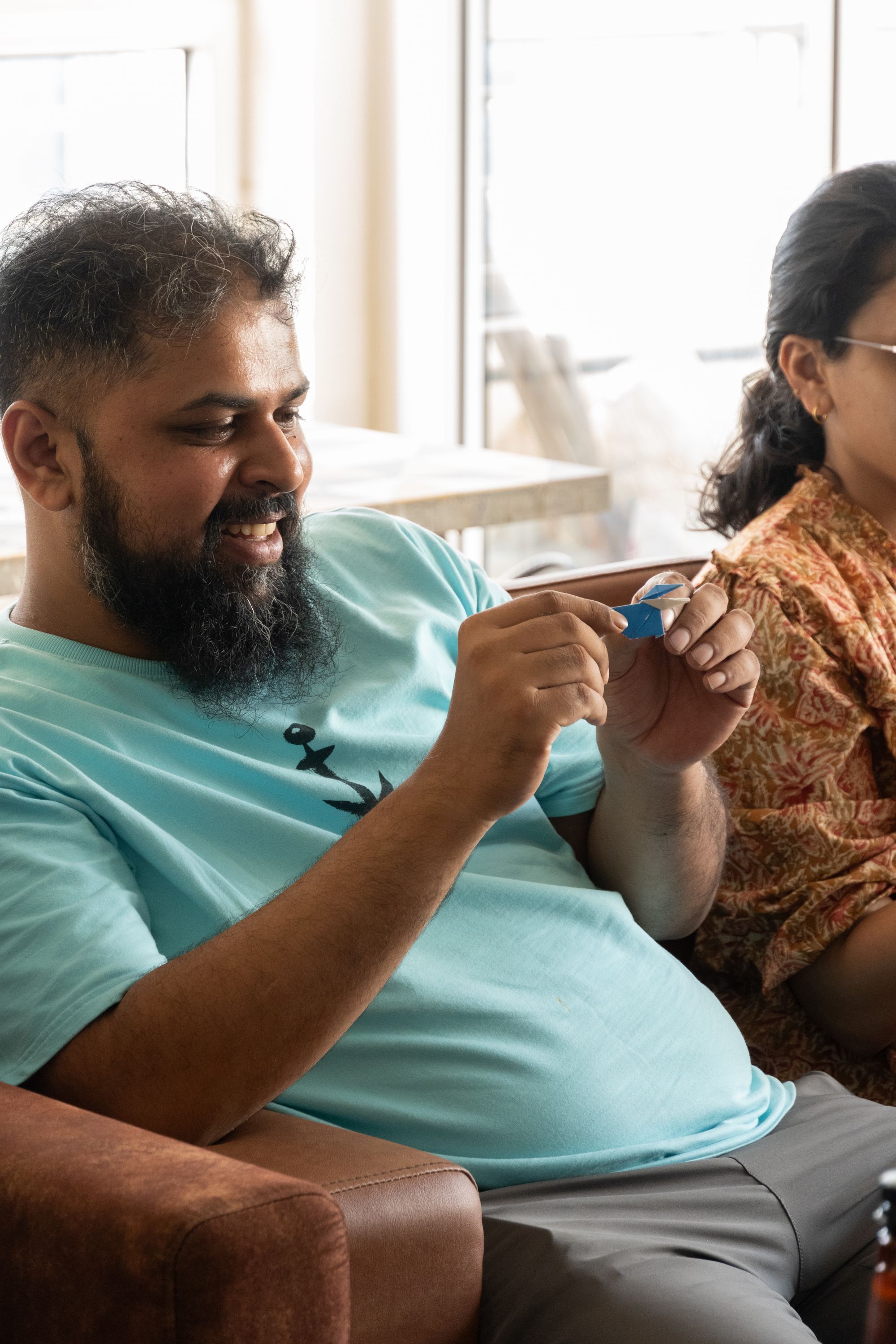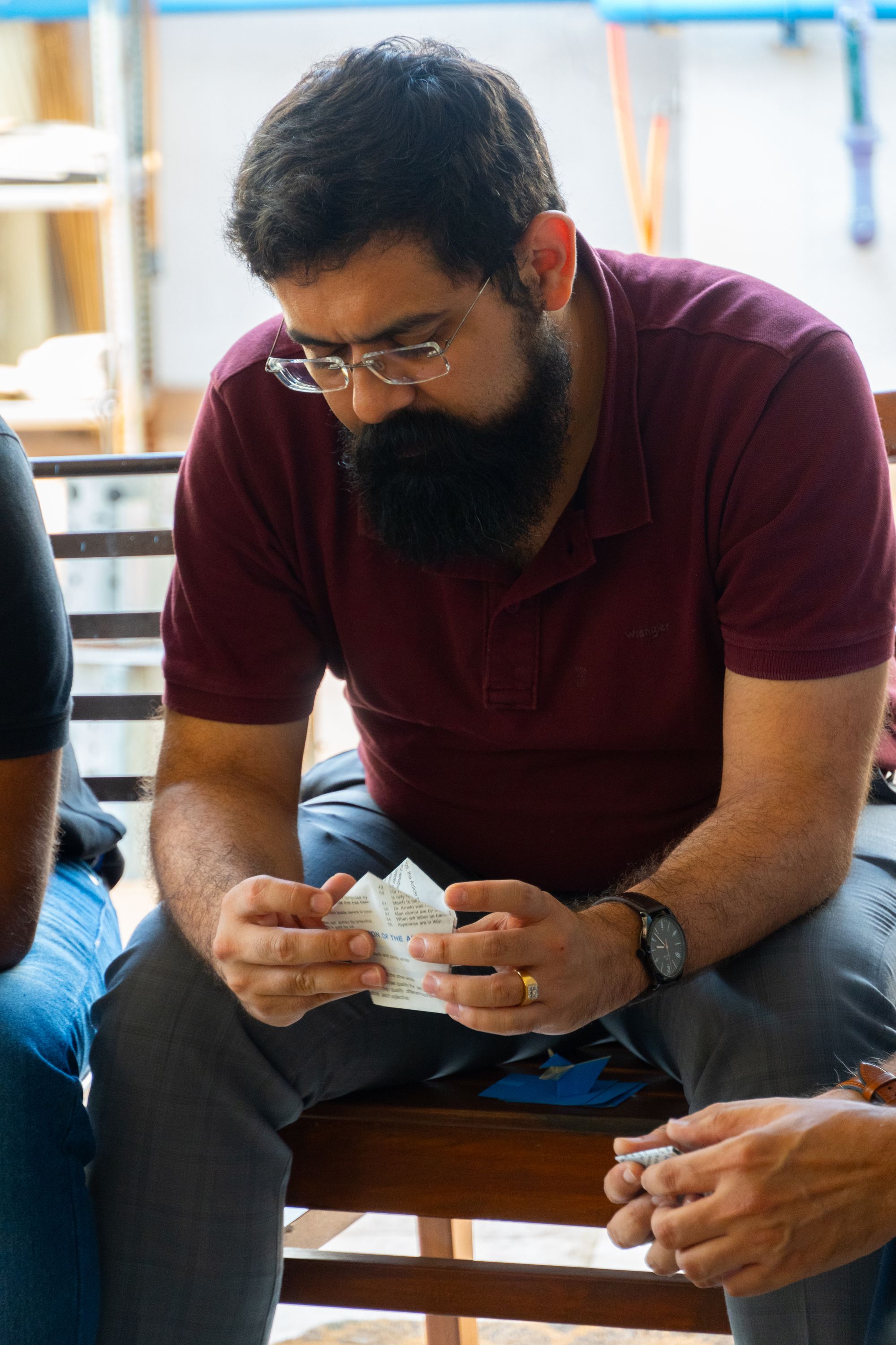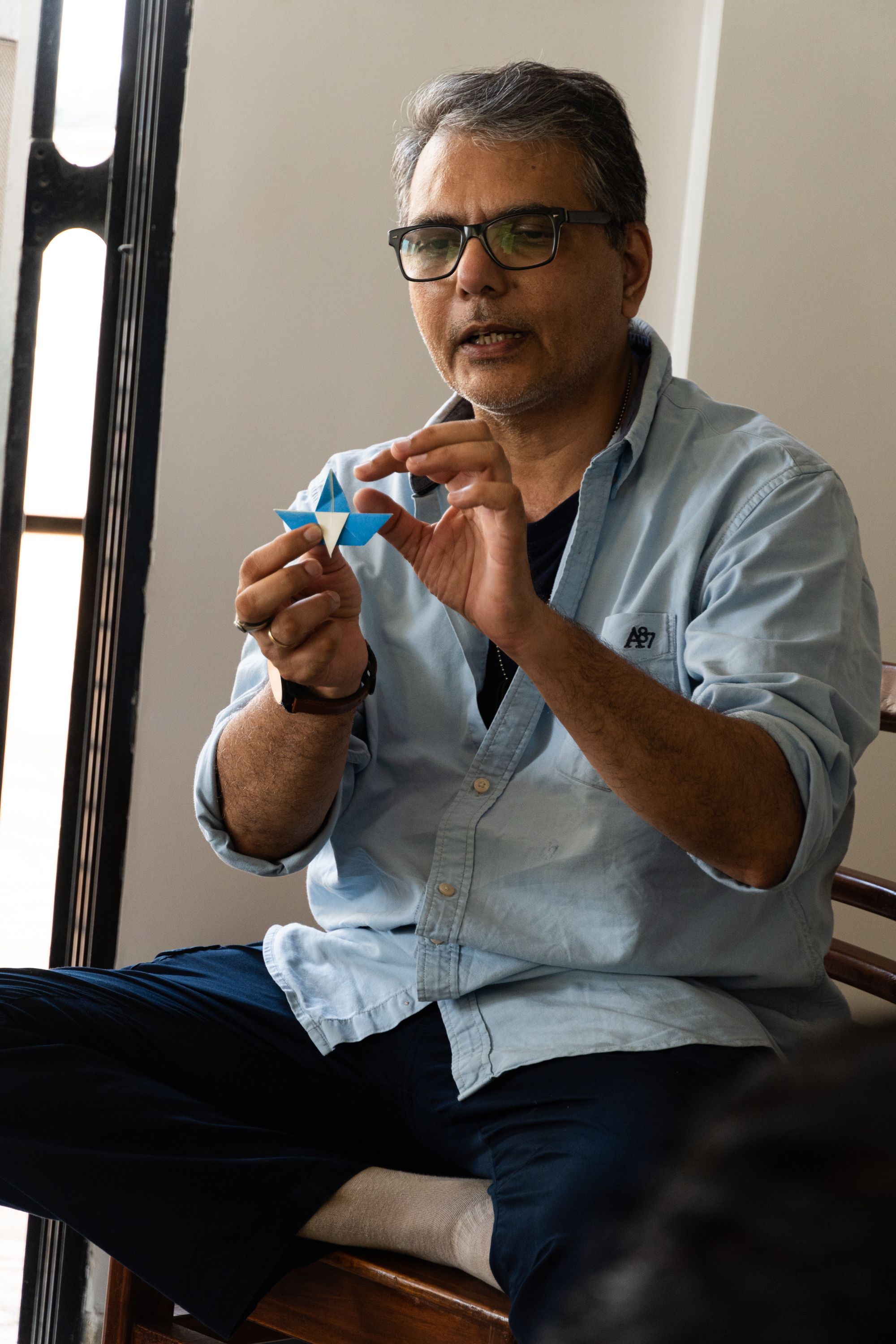 After the introductions, and the lunch, we had an origami session from Anool (@anooljm) where we made a crow, and a pentagon envelope.