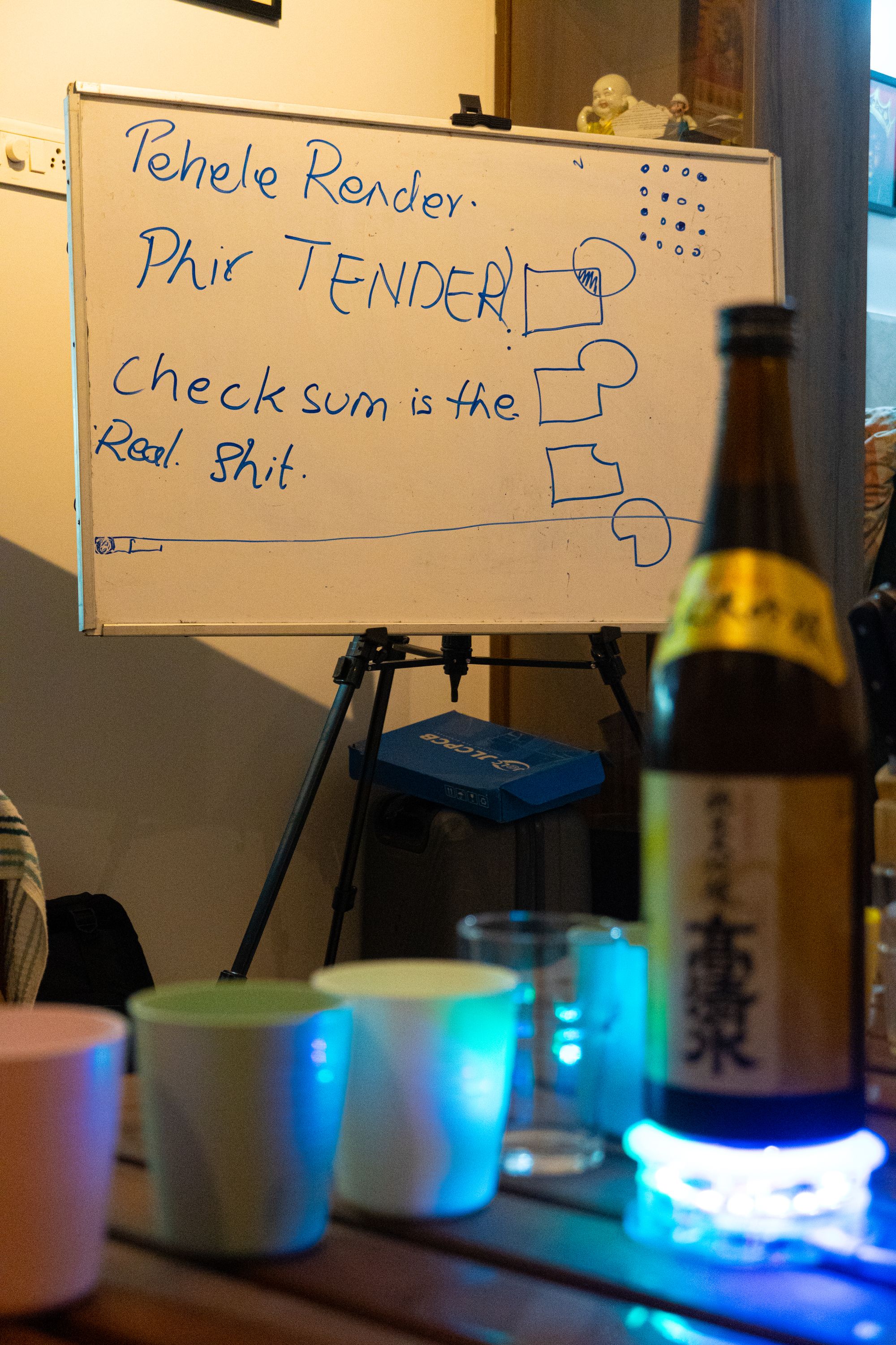 After the sessions, we broke out some Japanese rice wine, some beer, and got back to our food (biryani with some left-over tacos - wild combination, I know.)